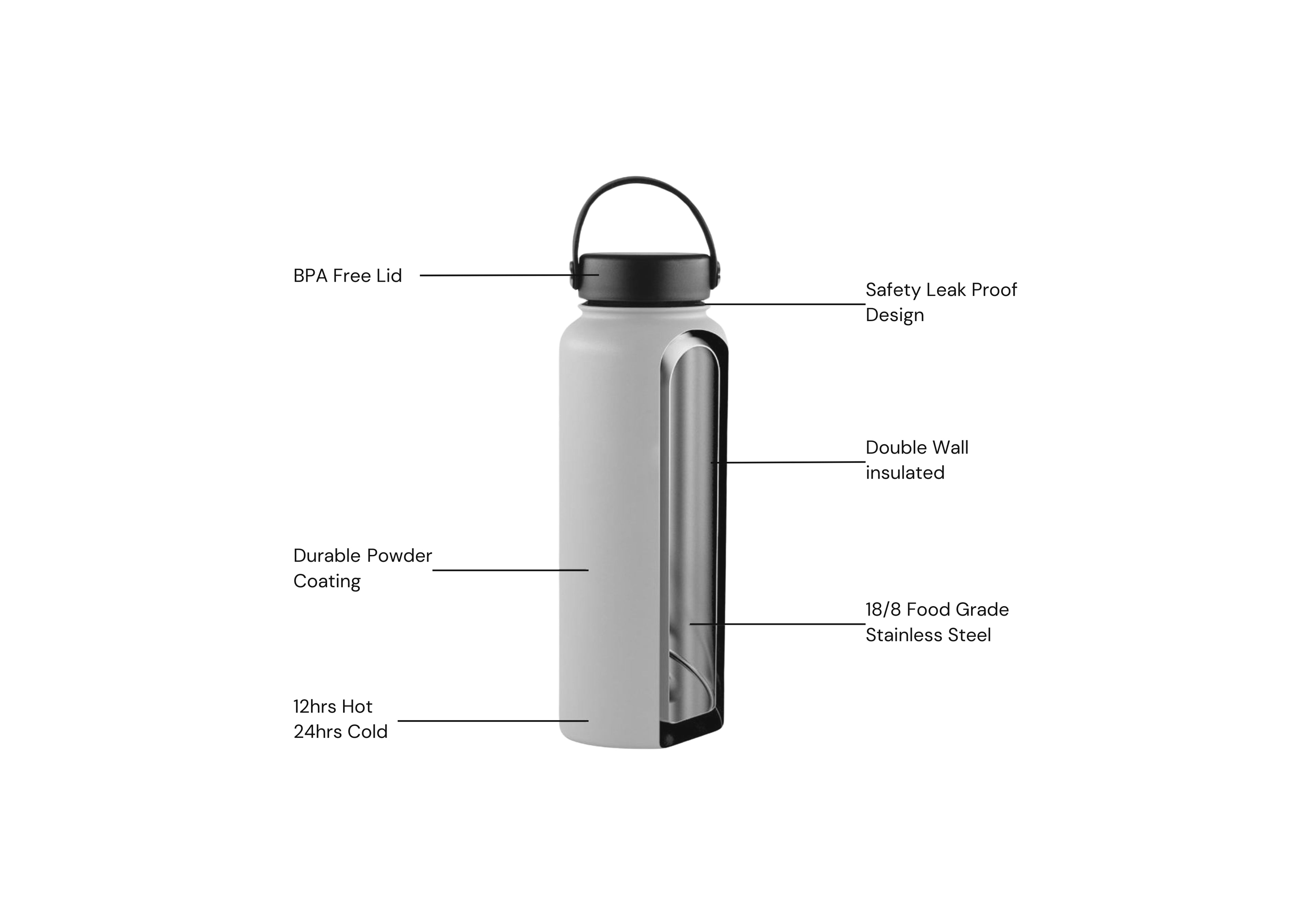 With double vacuumed walls and a stainless steel finish, they ensure durability and optimal insulation to maintain your drink's temperature. Plus, our new silicon sipping lid enhances convenience with an 'air-free' sip for maximised water flow.